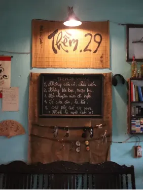 Nằm nép mình trong con hẻm nhỏ trên đường Nguyễn Văn Linh, Thềm 29 không chọn sự hào nhoáng mà chọn cách xoa dịu tâm hồn bằng những góc nhỏ đầy hoài niệm. Bước vào quán, nhịp sống bỗng chốc chậm lại giữa không gian yên tĩnh, mát mẻ, nơi những bộ bàn ghế gỗ mộc mạc và các bức tranh ảnh Việt Nam cổ điển cùng nhau dệt nên một bầu không khí thân thuộc đến lạ. Sự xuất hiện của những bé cún đáng yêu chạy quanh càng khiến không gian thêm phần sống động, gần gũi, biến nơi đây thành một chốn dừng chân đúng nghĩa cho những ai đang tìm kiếm sự bình yên.